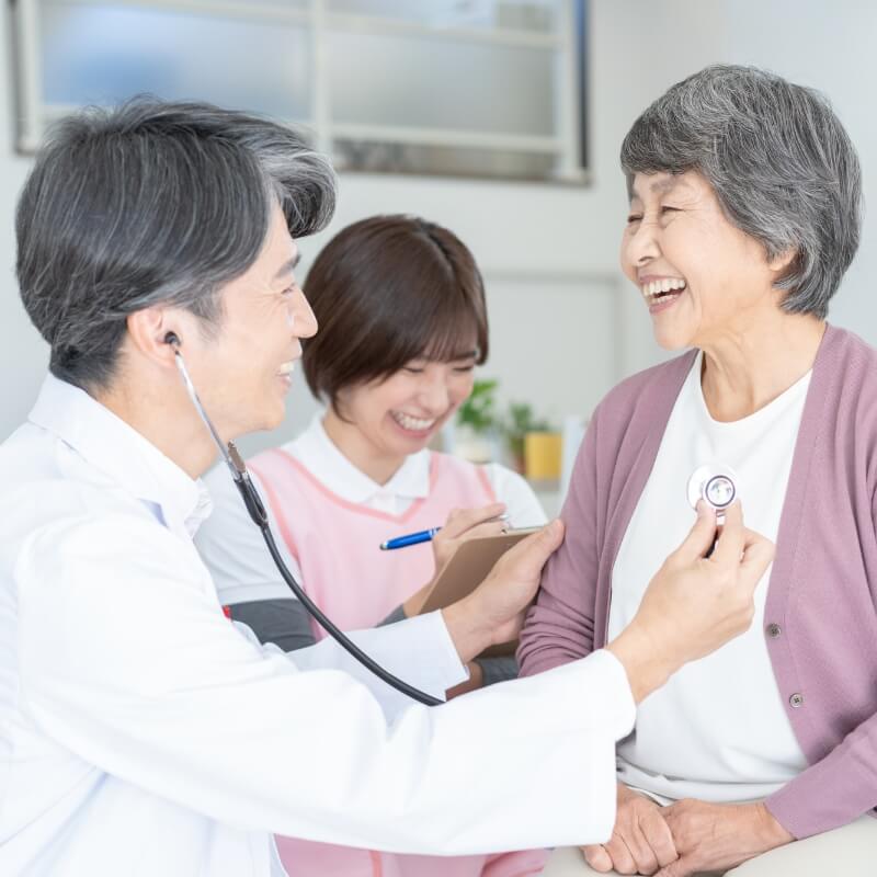 医師と看護師がご自宅や施設へ定期的に伺い、診察・治療・処方を行うのが訪問診療です。通院による体力消耗を避けられるため、患者さまは住み慣れた環境で落ち着いて療養できます。訪問回数は月1〜4回を基本とし、病状の変化に応じて柔軟に調整いたします。ご家族の通院付き添いも不要となり、介護と仕事の両立がしやすくなるという利点もあります。